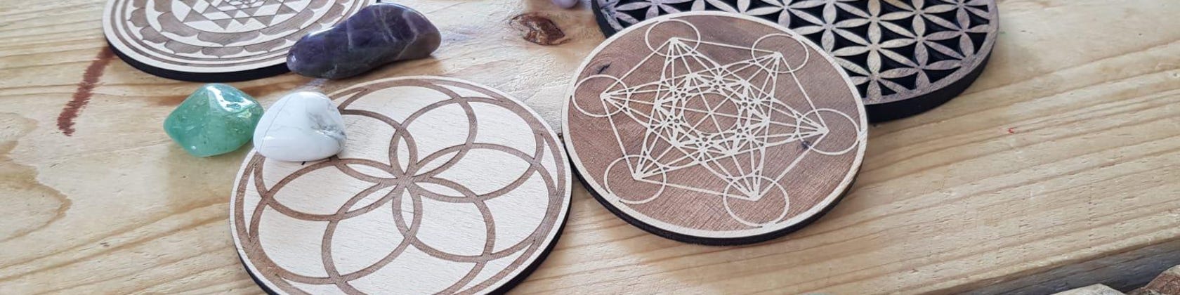 Blume des Lebens Untersetzer, Heilige Geometrie, Laser cut, Untersetzer für Tassen & Gläser, Holz, symmetrische Form, (4er Set)