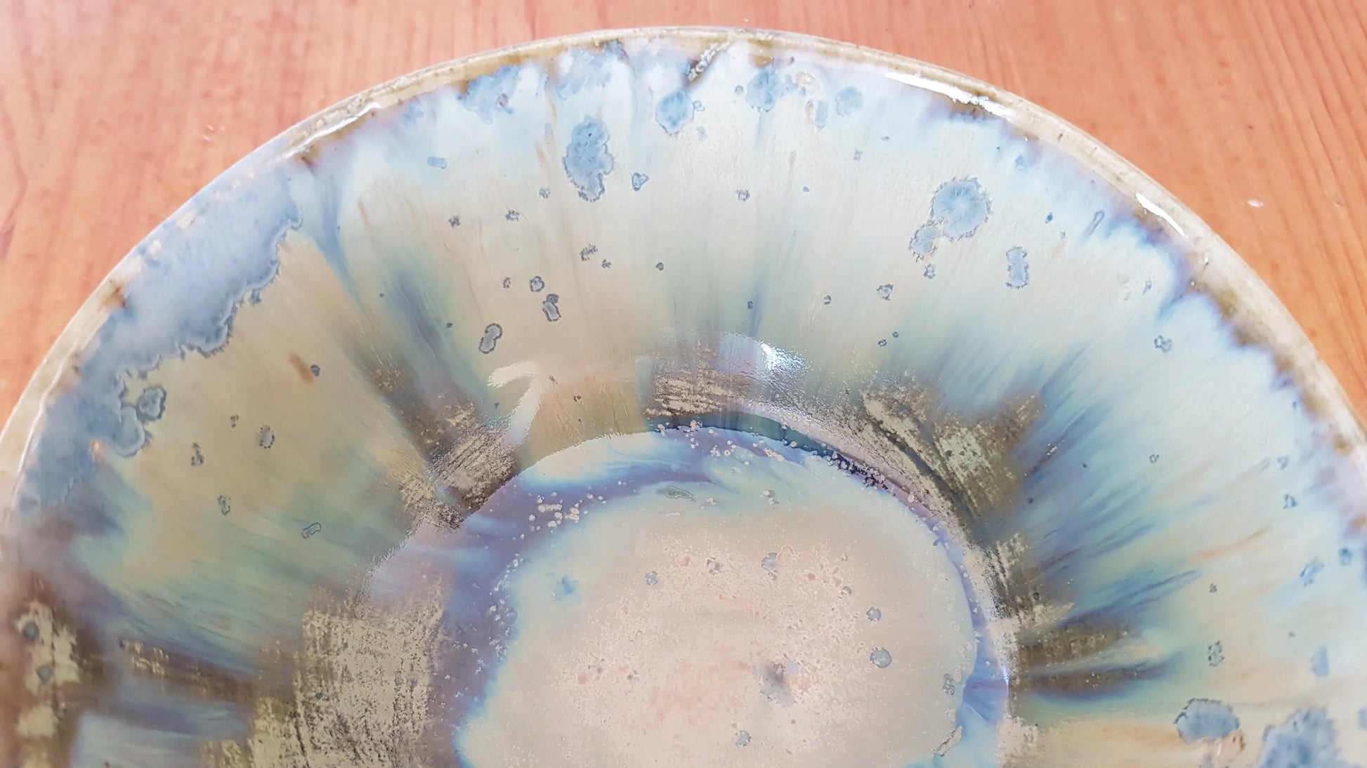 Diese wunderschöne Tonschale wurde in liebevoller Handarbeit von meiner Mutter angefertigt. Jedes Stück IST ein Einzelstück, da sie von Hand hergestellt Werden. Die Lasur ist eine Kombination aus hellblau, beige und weiß und stellt ein wunderschönes Einzelstück dar.